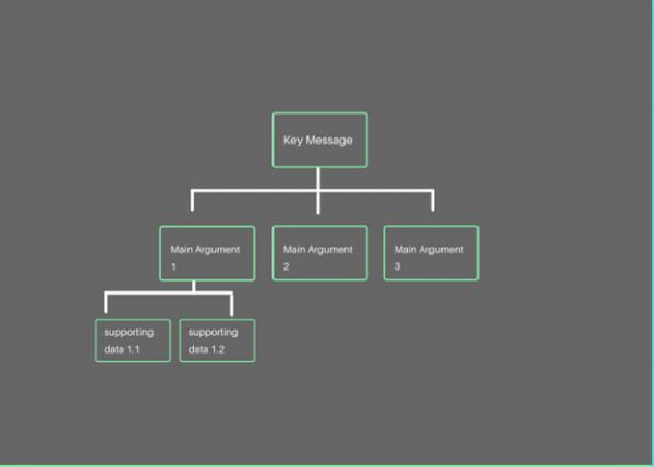 自上而下的沟通,或金字塔原则,是由麦肯锡合伙人芭芭拉·明托(Barbara Minto)创造和普及的,被许多人视为商业领域(甚至个人生活中)最高效的沟通方式。尽管对于像战略顾问这样的人来说,与人沟通如同第二天性,但很多数据科学家还是在沟通方面吃了亏。这个沟通方式的原理很简单,当你想要交流某个想法或观点时,最高效易懂的方法是:开门见山提出关键观点,然后给出支持观点的主要论点。如有需要,还可以在论点后添加数据支撑。