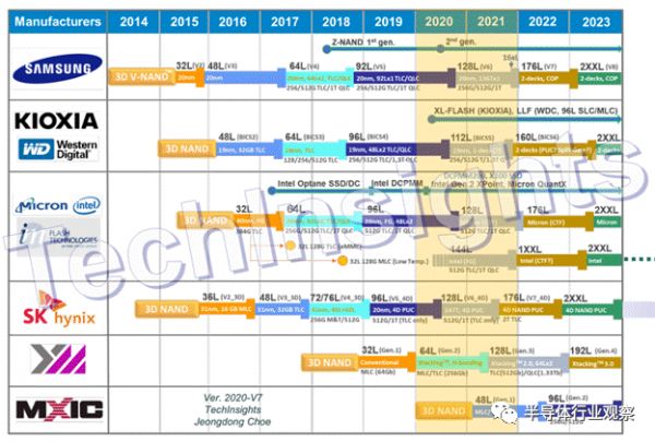 2014-2023年的世界领先存储公司的闪存路线图