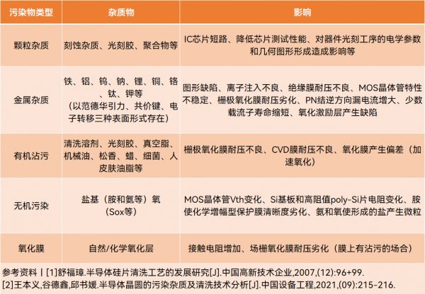污染物通常以原子、离子、分子、粒子或膜的形式,通过化学或物理吸附方式存在于硅片表面或硅片自身氧化膜中。
