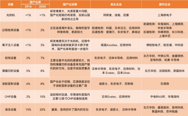 国内半导体设备国产化率及主要企业,图源丨国海证券