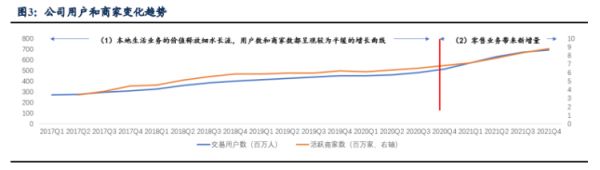 尽管外卖业务体量受疫情影响出现下降,但另一方面疫情却也带来了用户的增长。因疫情封控、堂食禁止,通过点外卖的方式获得食品的需求范围增大。同时,美团买菜、闪购等即时零售平台用户数也不断提升,因封控期间对新鲜食材的需求不减。