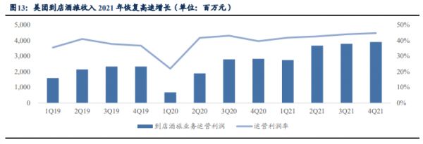 受此不良影响,国海证券预计2022年Q1到店酒旅业务总体营收约76亿元,同比仅增长16%。经营利润率环比下降至41%,2021年Q4经营利润率则在较高的44.7%。