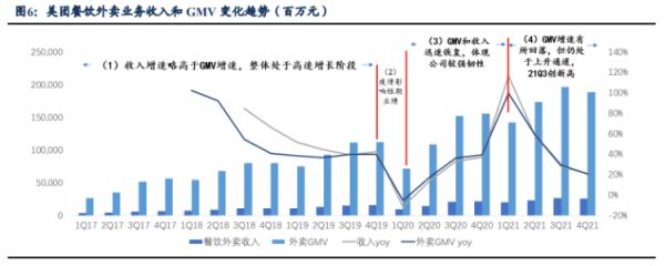 国海证券预计,2022Q1餐饮外卖业务营收同比增长15%至236亿元,GTV同比增长17%至1669亿元,增速均有一定程度的下滑。