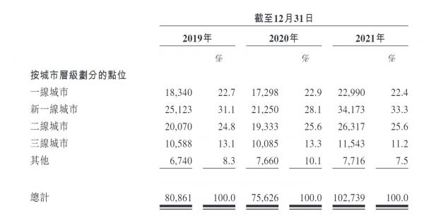 据了解,友宝目前点位主要位于长三角、珠三角、京津冀等发达地区。截至2019年、2020年及2021年12 月31日,一线城市点位占比22.7%、22.9%、22.4%;新一线城市占比31.1%、28.1%、33.3%;二线城市占比而24.8%、25.6%、25.6%。而友宝对三线城市的布局还未铺开。
