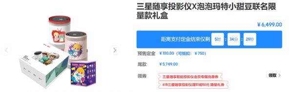 三星与泡泡马特旗下IP小甜豆联名推出了“2022年儿童节限量投影仪”。如果说快消品还能通过视觉与创意和儿童两个字打个“擦边球”,那么三星这次的儿童节联名款,从价钱和目标用户上,可以说完全是针对成年人的一次营销尝试。