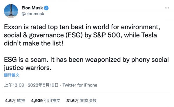 “ESG是个骗局”,马斯克大战ESG的戏码还在上演。