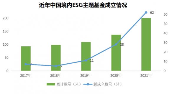 据中国资本市场研究院《中国ESG发展白皮书》数据,截至2021年底,A股年内已成立的ESG主题基金达200支(不同份额未合并),总规模合计超2578.4亿元,新成立的ESG主题基金数量连续3年翻倍增长。
