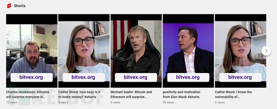 Bleeping Computer发现,五月初开始,就有一帮人创建或入侵现有的YouTube帐户,上传Elon Musk、Cathie Wood、Brad Garlinghouse、Michael Saylor和Charles Hoskinson 等人的Deepfake视频。