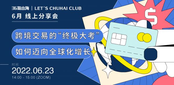 围绕跨境支付与企业全球化增长这一主题,36氪出海旗下 LET'S CHUHAI CLUB 社群将在6月23日(星期四)下午2:00-3:00推出线上闭门分享会活动。