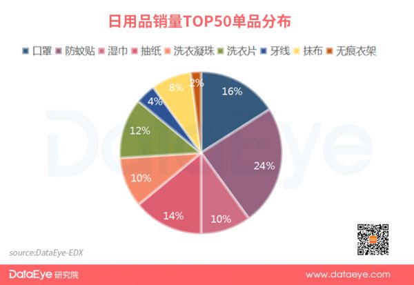 1 近30天日用品大盘数据,销量TOP50单品分布