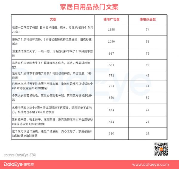 DataEye电商研究院针对家居日用品选品总结了两点经验: