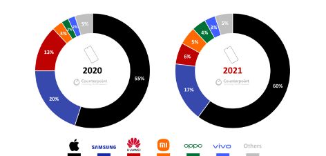 图:2021年全球400美元以上智能手机销量份额 (来源:Counterpoint)