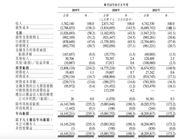 汽车行业高度依赖规模,量少就意味着成本难以摊销,招股书显示,从2019年到2021年,威马汽车毛利率分别为-58.3% 、-43.5% ,以及-41.1%。
