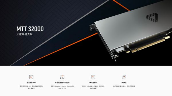 由前英伟达全球副总裁张建中创办,成立于2020年的摩尔线程,在成立1年后发布了第一代MUSA系统架构GPU“苏堤”,其中的顶配桌面级显卡MTT S60,拥有2048个MUSA核心,主频达1.5GHz,提供6T FLOPS的单精度浮点计算能力,板载8GB显存,板载DP1.4和HDMI 2.1接口并支持最大8K视频输出。