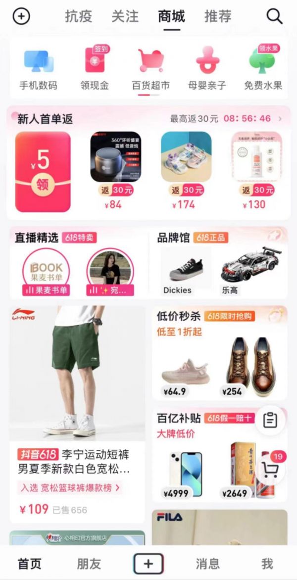 去年八月,抖音将抖音小店升级为抖音商城,新版界面与传统电商APP类似,并先后推出了百亿补贴、拼团、秒杀等活动。不久后,抖音又推出独立电商APP抖音盒子,与商城分别主攻潮流电商和下沉市场。