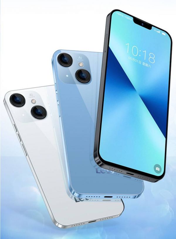 没错,标准的刘海屏、光滑的直角中框、圆角矩阵的机身,呈对角排列的相机模组,还有颇具苹果风格的淡蓝配色壁纸,整款产品不能说和iPhone 13相像,只能说是一模一样。