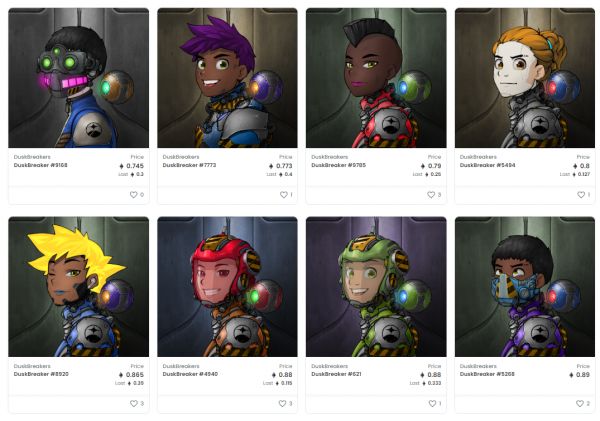 上线1周,游戏从属的1万份NFT售罄,这类NFT名叫:创世纪DuskBreakers。每个游戏NFT头像持有者代表了一个被招募的Breaker,他们可以用自己的游戏身份在元宇宙中寻找一个叫做Dusk的外星飞船。
