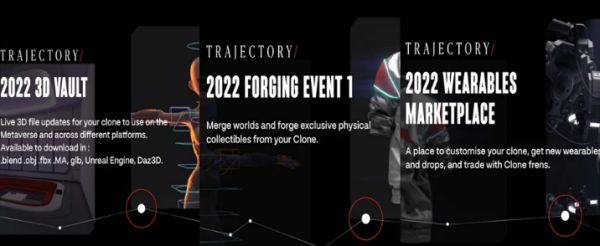 在不久的将来,每个克隆 X可以植入AI芯片,与持有者进行交互,再通过 VR 设备增强体验感,将NFT+社区+应用三者结合,成为能够跨多个元宇宙的真正实现NFT+AI+VR三位一体的项目,在持有者拥有NFT的同时,还能够在类似Decentraland、SandBox里同步使用自己的Clone x形象。