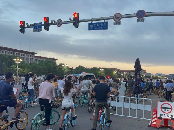 端午假期北京白天的气温飙升到三十六七度,但晚上7点之后,干爽的小风配上适宜的气温,成为骑行的最佳条件。于是,每到晚上7点至9点,大量夜骑的“骑手”便会出现在街头。