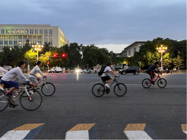 身着专业紧身骑行服、脚踏上了锁的公路车大佬,往往是第一个冲出人群。而后,变速折叠车、共享单车们紧跟其后。绿灯一亮,一群骑着自行车的男男女女,争先恐后地冲了出去。白帆形容端午节小长假北京长安街夜骑的场面,“如同下饺子”。