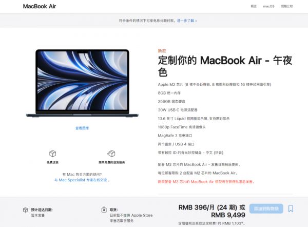 最后是价格方面,目前新款MacBook Air已经登陆国行商店,入门款(8核CPU/8核GPU,8+256GB,30W电源适配器)版本售价9499元,标准款(8核CPU/10核GPU,8+512GB,35W电源适配器)版本售价11899元,每增加8GB内存需要加1500元,每增加256GB硬盘需要1500元,需要67W充电器还要再加150元。