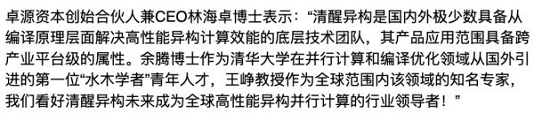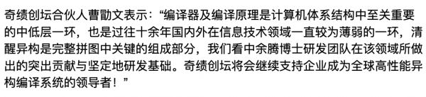 与此同时,清醒异构研发团队来自清华大学、帝国理工学院和利兹大学等高校,创始人兼CEO余腾曾在2019年入选国家博士后引进计划和清华大学“水木学者”计划,曾参与领导阿里、商汤、华为等多个校企合作项目;首席科学家王峥教授为全球异构编译方向杰出学者,入选ACM CGO名人堂,现任英国利兹大学智能软件技术讲席教授,英国阿兰图灵研究所会士,还曾负责ARM阿里、华为多个校企合作项目,发表领域内高水平论文100余篇。