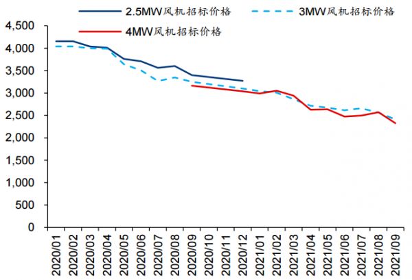 图:风机功率及招标价格(单位:元/KW);资料来源:金风科技业绩演示材料,华泰证券