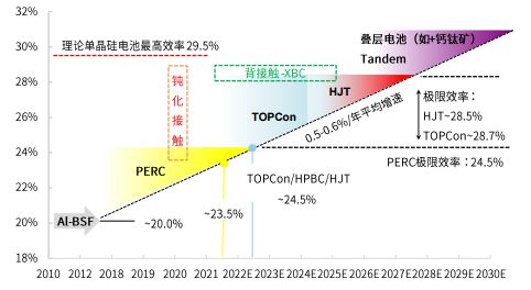 图7:光伏不同技术的转化效率及未来前景;资料来源:上海交通大学预测、光大证券