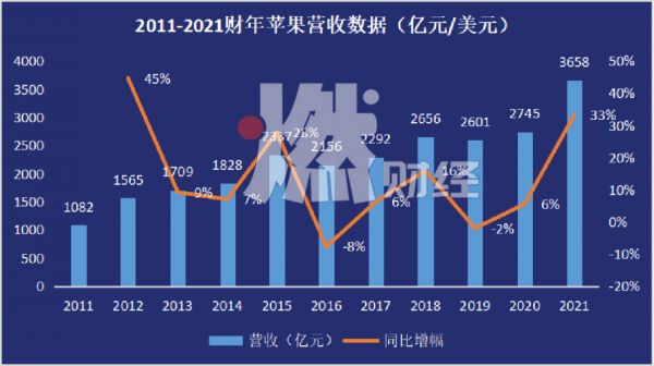 网友的寄托不无根据。数据显示,在推出iPhone12系列后,苹果的财务数据确实表现良好。2021财年,苹果实现3658亿美元的营收,同比增幅达到33%。