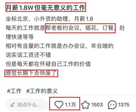 最近,有个北京女孩在社交平台上发帖晒出了自己月薪1.8万但“毫无意义”的工作。