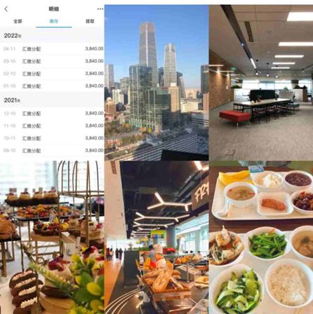 这份工作不仅钱多事少,从该女生晒出的照片来看,办公环境和福利待遇也相当不错:身处CBD、公司宽敞明亮、吃的还是健康餐。