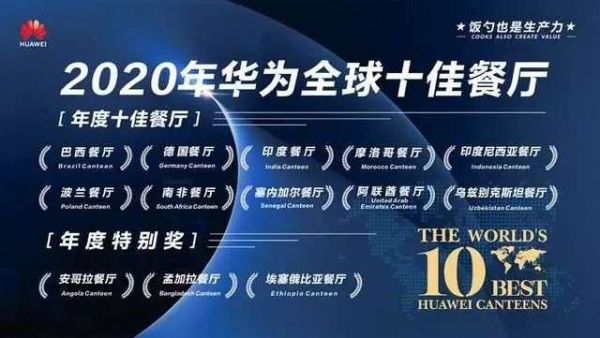 2019年,华为搞了一场“华为全球十佳餐厅”评选,从110个国家的149个自有员工餐厅中评出十佳餐厅,不含国内餐厅。