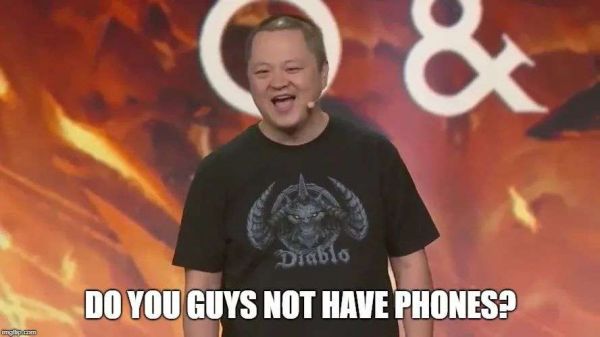在压轴环节宣布一款手游,让不少暴雪拥趸感觉自己被抛弃,自然招致了大量的嘘声。在现场提问环节,一位玩家直接发难:“这是一个不合时宜的愚人节玩笑吗?”《不朽》的总设计师 Wyatt Cheng 给出了否定的回答,之后也便有了那经典的一问:“你们难道都没有手机吗?”