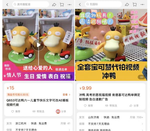 “尤其对于希望把可达鸭作为直播间作为赠品的带货主播们,会花几千块买一个正版的可达鸭,而在后续给消费者的赠品中便用山寨产品充数。”