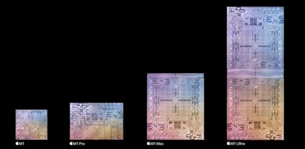 ▲苹果M1系列四大芯片,从左至右:M1、M1 Pro、M1 Max、M1 Ultra