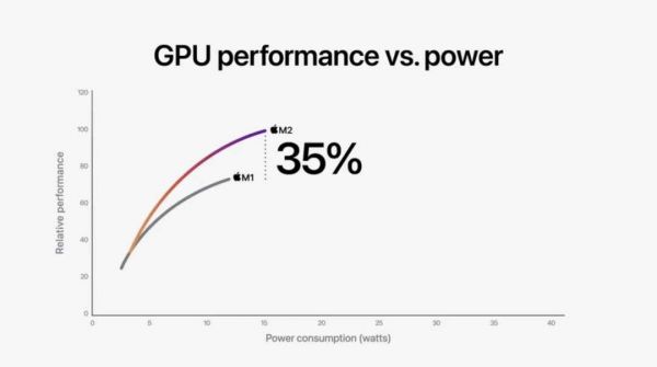 ▲苹果M2较M1 GPU性能提升35%
