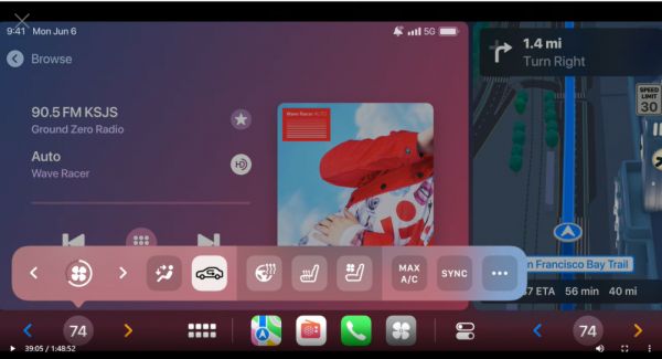 另外,新系统也可直接控制收音机、空调等智能座舱功能。简单来说就是用户可以把在 iPhone 上的体验,无缝衔接到车内这个新使用场景中。