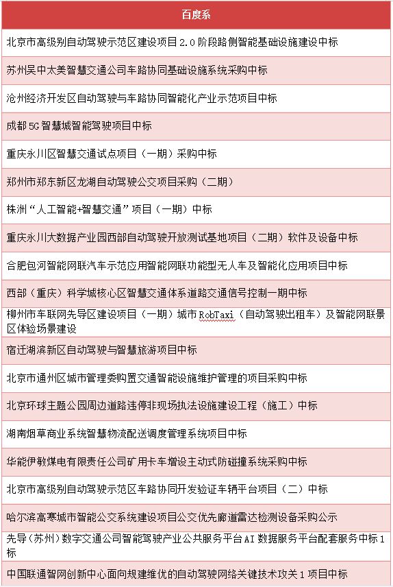 (百度中标不完全榜单,图由智慧交通ITS114整理)