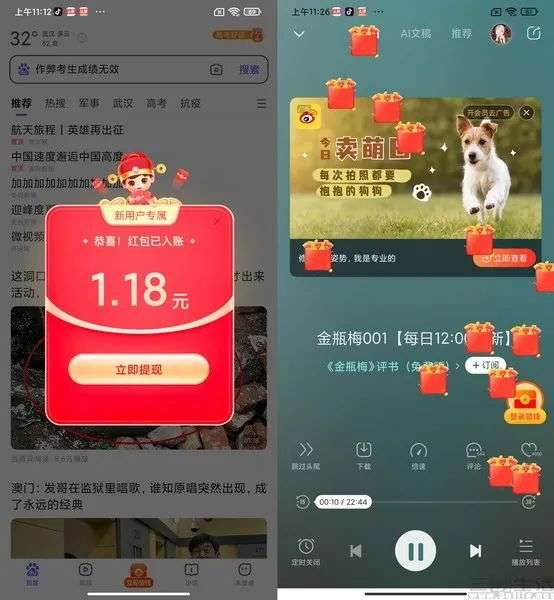 总计下来共有20款之多,分别是(排名不分先后):百度、百度极速版,抖音、抖音极速版,今日头条、今日头条极速版,快手、快手极速版,喜马拉雅、喜马拉雅极速版,爱奇艺、爱奇艺极速版,美团、美团极速版,墨迹天气、墨迹天气极速版,微博、微博极速版,UC浏览器、UC浏览器极速版。