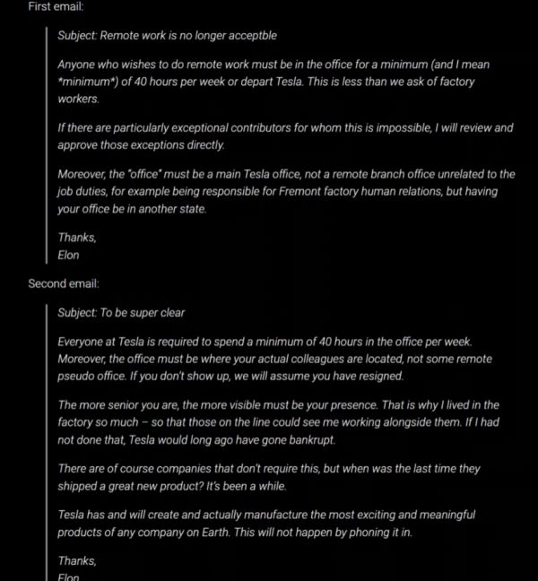作为硅谷著名的工作狂,马斯克给员工保留了两个选项,要么回来工作,要么自己走人。