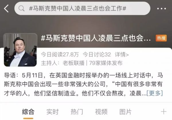 我想,这也是马斯克对于居家办公的“深恶痛绝”,当然,马斯克对于中国区的员工还是十分喜爱,并当做了榜样,他称“中国有很多非常有才华、勤奋的人,他们坚信制造业。他们不仅会熬夜,凌晨三点也兢兢业业地工作,甚至根本不离开工厂。而美国人则尽量不去上班。”
