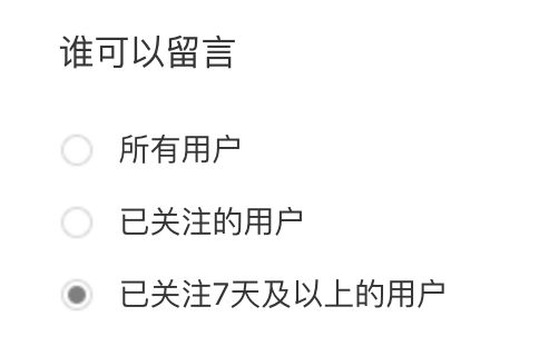 又比如,留言权限分为所有人、已关注、已关注 7 天以上的用户,这么设计的逻辑是什么?