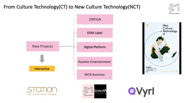 SM的“新文化科技(NCT)发展蓝图”,包含数字音乐、电子音乐厂牌、数字平台计划、养成系App,多频道网络平台。资料来源:根据公开资料整理
