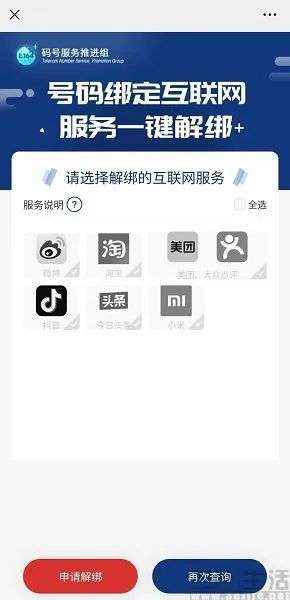 据悉,“一键解绑”提供解除本人持有号码前(即号码注销重启前),号码注册绑定的互联网账号关联关系(本人持有号码期间绑定的互联网账号不受影响)。且只要不是在2021年前就携号转网的移动、联通、电信用户皆可使用,所覆盖的互联网平台则包括微博、淘宝、抖音、今日头条、美团、大众点评、小米生态等。