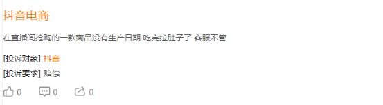 据多家投诉平台显示,涉及抖音电商的投诉中,多有商品质量问题出现,部分是食品相关问题。直播带货需要低价食品走量,在直播带货风口阶段就有类似事件曝光。