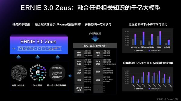 具体来说,此次采用的是百度最新发布的 千亿参数的AI大模型 百度ERNIE 3.0 Zeus(宙斯) ,其从万亿级字符、千万级知识图谱和数百个任务中融合学习,同样能够完成开放问答、信息抽取、情感分析、语义匹配等各类NLP任务。