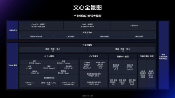 2021年12月,百度发布了全球首个知识增强千亿大模型鹏城-百度·文心,参数规模2600亿。2022年5月20日,百度对百度文心大模型全景图进行升级,并且连发十款大模型。