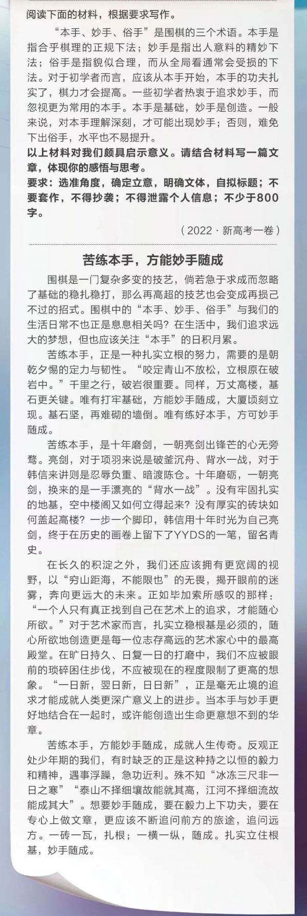 ▲度晓晓高考作文《苦练本手,方能妙手随成》节选