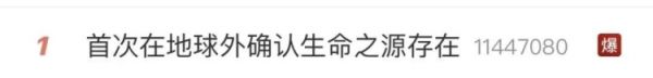 6月8日,“首次在地球外确认生命之源存在”热搜显示“爆”。