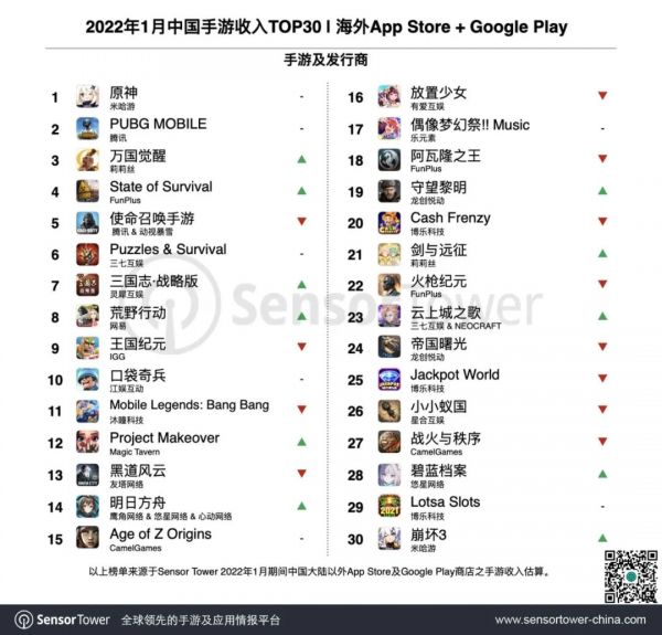 因为《原神》,米哈游在国内手游厂商中的排名大幅飙升。《原神》发行刚过1个月,Sensor Tower 数据公布的手游厂商营收Top30榜单中,米哈游直接从26位上升到了第2位。